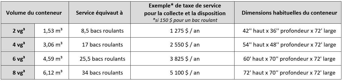 Les utilisateurs de conteneurs à déchets sont taxés en fonction du volume de leur conteneur.