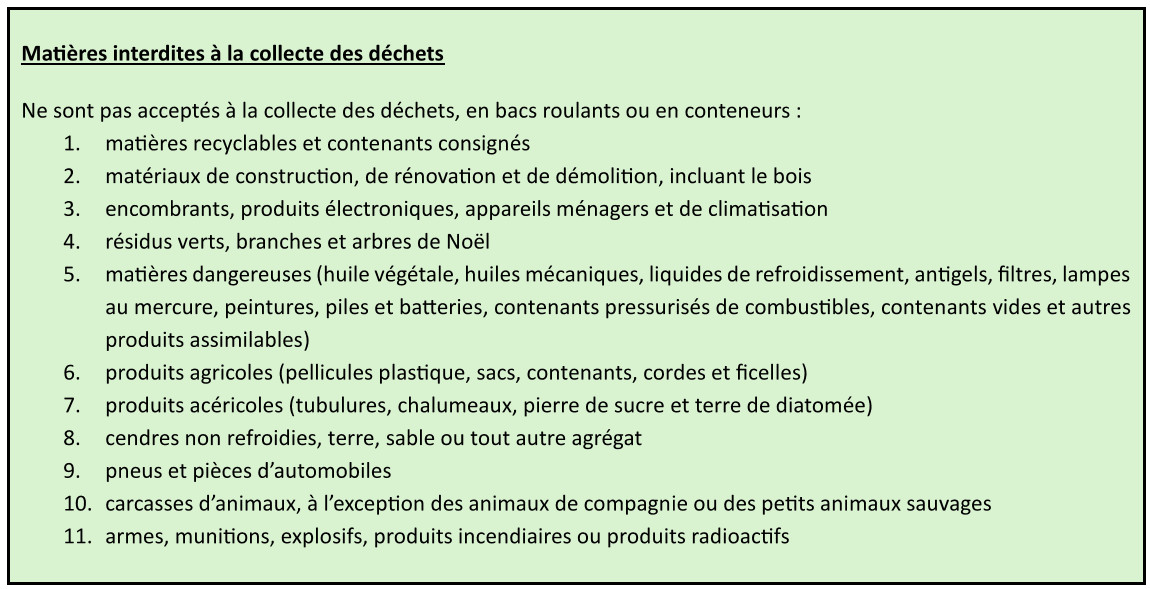 Le tri des matières est obligatoire pour bénéficier du service de collecte.